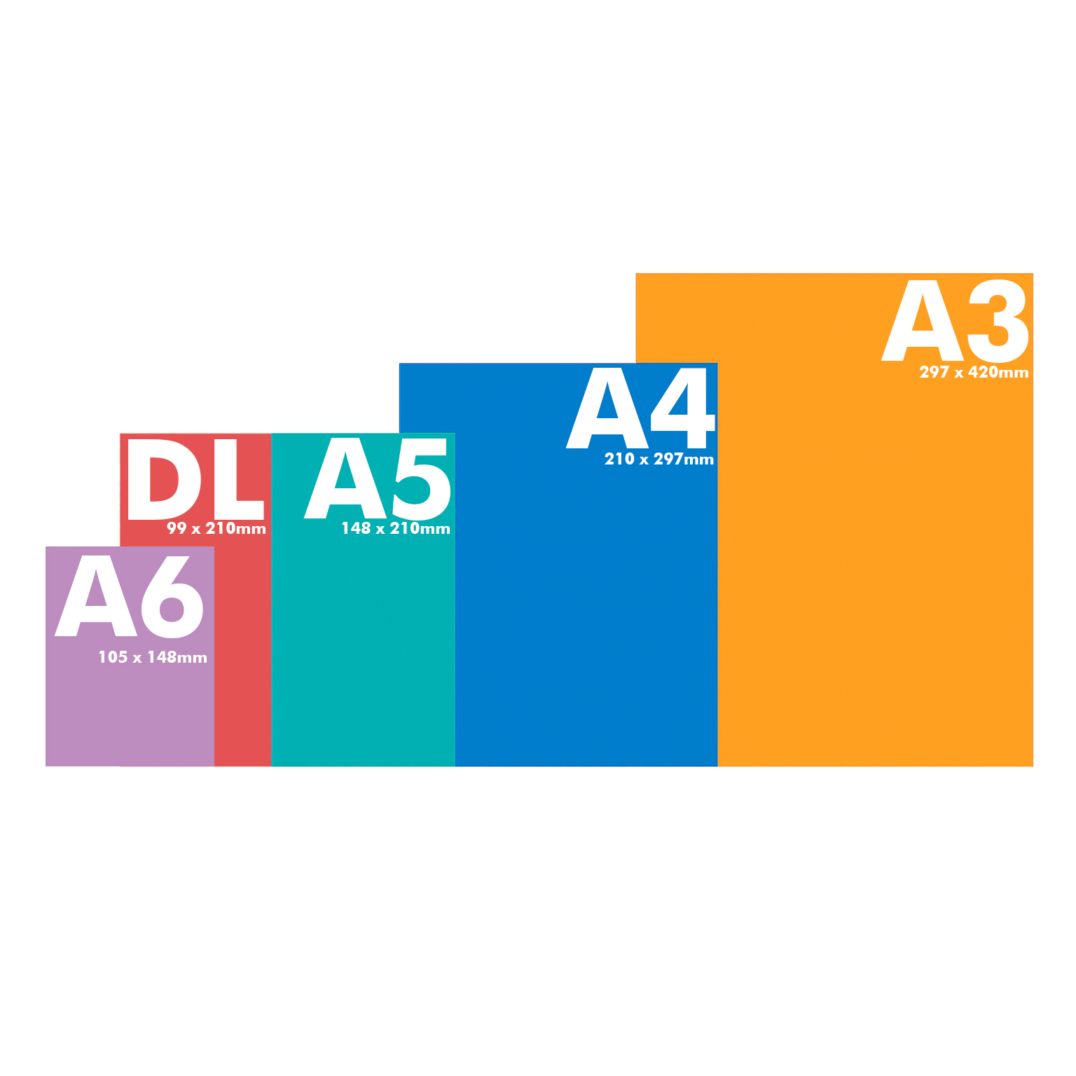 - Size Options: We offer a variety of sizes to fit your specific needs – A3 (297mm x 420mm), A4 (210 x 297), A5 (148.5 x 210), and DL (99 x 210).